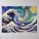 Collajes de arte únicos de las obras maestras del mundo, El nacimiento de Venus de Sandro Botticelli (1445 - 1510), La noche estrellada de Vincent van Gogh (1853 - 1890) y La gran ola de Kanagawa de Katsushika Hokusai (1760-18) 49).