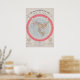 El mapa del globo se estiró y aplastó en un plano circular. Incluye una calculadora de longitud y tiempo y diagramas que muestran las solstillas de junio y diciembre. La frontera muestra "hora del sol en minutos". Mapa del globo terrestre estirado y aplanado en un plano circular (proyección azimutal), con dos brazos móviles para calcular el tiempo en lugares de todo el mundo.