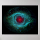 Esta imagen infrarroja del Telescopio Espacial Spitzer de la NASA muestra la nebulosa Helix, un estrellato cósmico a menudo fotografiado por astrónomos aficionados por sus vivos colores y su asombroso parecido con un ojo gigante. La nebulosa, situada a unos 700 años luz en la constelación Aquarius, pertenece a una clase de objetos llamados nebulosas planetarias. Descubridas en el siglo XVIII, estas bellezas coloridas fueron nombradas por su parecido con planetas gigantes del gas como Júpiter. Los nebulosos planetarios son restos de estrellas que alguna vez se parecían mucho a nuestro sol. Cuando mueren estrellas similares al sol, sacan sus capas gaseosas externas. Estas capas son calentadas por el núcleo caliente de la estrella muerta, llamada enana blanca, y brillan con colores infrarrojos y visibles. Nuestro propio sol florecerá en una nebulosa planetaria cuando muera en unos cinco mil millones de años. En la vista infrarroja de Spitzer de la nebulosa Helix, el ojo se parece más al de un monstruo verde. La luz infrarroja de las capas gaseosas exteriores está representada en azul y verde. El enano blanco se ve como un pequeño punto blanco en el centro de la imagen. El color rojo en el medio del ojo denota las capas finales de gas que explotó cuando la estrella murió. El círculo rojo más brillante del centro es el brillo de un disco polvoriento que rodea el enano blanco (el disco en sí es demasiado pequeño para resolverlo). Este polvo, descubierto por la visión infrarroja de Spitzer para la búsqueda del calor, probablemente fue levantado por cometas que sobrevivieron a la muerte de su estrella. Antes de que la estrella muriera, sus cometas y posiblemente planetas habrían orbitado a la estrella de manera ordenada. Pero cuando la estrella volaba de sus capas exteriores, los cuerpos helados y los planetas exteriores se hubieran arrojado unos a otros, lo que resultaría en una tormenta de polvo cósmica en curso. Cualquier planeta interior del sistema se habría quemado o se habría tragado a medida que su estrella moribunda se hubiera expandido. Hasta ahora, la nebulosa Helix es uno de los pocos sistemas de estrellas muertas en los que se han encontrado evidencias de sobrevivientes de cometas. Esta imagen está compuesta por datos de la cámara de matriz infrarroja de Spitzer y del fotómetro de imágenes multibanda. El azul muestra luz infrarroja de 3,6 a 4,5 micras; el verde muestra luz infrarroja de 5,8 a 8 micras; y el rojo muestra luz infrarroja de 24 micras.