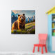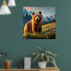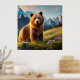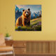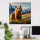 Oso pardo lindo sentado en la ladera de la montaña en flores silvestres rosas Cordillera detrás de él Ai Generated Art de minx267