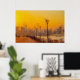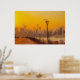 Paisaje urbano al atardecer poster. Fotografía manipulada digitalmente de un horizonte urbano al atardecer, tomada de un puente. Arte moderno y contemporáneo para alguien que busca algo diferente.