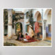 Este es un cuadro de tres hombres en un patio, dos están sentados en una alfombra oriental y un tercer puesto a su lado. Se encuentran en el patio de un edificio con columnas ornamentadas y arcadas cubiertas de hiedra.