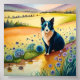 Póster El perro blanco y negro en el campo floral