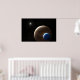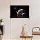 Concepto artístico del planeta gigante del gas Kepler-1625b y una sospechada luna de acompañamiento. Se estima que es tan grande como el planeta Neptuno, la luna es diferente de cualquier cosa que se encuentre dentro de nuestro sistema solar. Podría haberse formado a través de un proceso diferente al conocido por las casi 200 lunas del sistema solar. El planeta y la luna orbitan la estrella Kepler-1625, situada a 8.000 años luz de distancia en la constelación Cygnus. La estrella madre es similar a nuestro Sol, y el planeta y la luna están situados en su zona habitable donde las temperaturas permiten que el agua líquida permanezca estable. Sin embargo, ambos mundos son cuerpos gaseosos y no son adecuados para la vida como la conocemos.