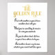 El poster Golden Rule presenta un título de oro falso con texto negro retro. Esta impresión de arte hace un gran regalo motivacional de decoración inspiradora de oficina o casa.