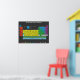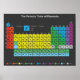 Este poster de pared de tabla periódica presenta un fondo oscuro.