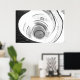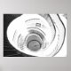 Un poster muestra el péndulo de Foucault colgado dentro de una torre alta