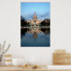 Magnífica imagen del Capitolio y su reflejo en la piscina al fondo de Capitol Hill en Washington, DC. Se estaba poniendo a la puesta de sol cuando el sol se pone de color dorado y añade un suave color pastel a la piedra blanca del Capitolio contra un glorioso cielo azul y las nubes se juntan detrás de la cúpula del Capitolio que preside Lady Freedom. Tan majestuoso como cualquier vista construida por el hombre. Imagen creada por el fotógrafo Neil Willens.