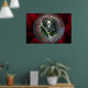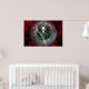 El diseño Grim Reaper. Cuenta con un fresco pardo pardo que sujeta una guadaña en un fresco y verde claro con un gran fondo rojo.