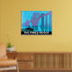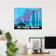 Versión restaurada del poster del puente de la cuarta carretera. Un colorido afiche de viaje del tren vintage que muestra el puente en el crepúsculo con luces de los coches de pasajeros visibles cruzando el puente.