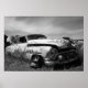foto en blanco y negro de un auto de Buick en un depósito de chatarra