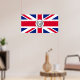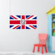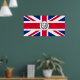 Bandera de Jack Patriótico Británico para celebrar la coronación de 2023 del Rey Carlos III de Gran Bretaña. En el centro hay un disco con un retrato de arte lineal del rey con una corona de laurel.