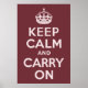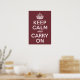 El color rojo oscuro del vino con un diseño rosa más claro en una versión moderna del diseño clásico "Keep Calm and Carry On".