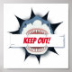 Impresionante poster de tiburón, con las palabras ¡MANTENTE FUERA! escrito en el cartel en la boca del tiburón. Perfecto para habitaciones para niños, para salas de juegos y jardines. Puede cambiar el texto a un nombre si lo prefiere. #zazzlemade Copyright Bridget Edmonds