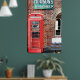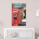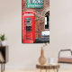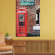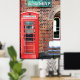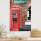 Fotografía de un viejo y oxidado cartel publicitario del Super Soap de Hudson sobre una antigua caja de teléfonos rojos de estilo británico.