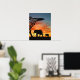 Póster El Safari Africano Sunset Elephant Silhouette Art