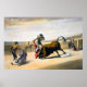 El ilustracion vintage Lake Price de los años 1860 muestra un torero, durante una corrida de toros, saltando del camino de un toro de carga mientras se sumerge en el cabo.