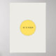 Obra de arte cristiana minimalista con la frase "Está en pie" dentro de una forma de ráfaga de sol amarillo brillante. Una audaz imprimible inspirada en Pascua celebrando la resurrección de Cristo.