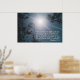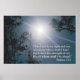 La foto (horizontal) del sol a través de las ramas de los árboles muestra la popular cita de la Escritura de los Salmos 27:1 — "El Señor es mi luz y mi salvación; ¿a quién le temo? El Señor es la fuerza de mi vida; ¿a quién le tengo miedo?" Vea el juego de guiones.