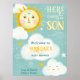 Bienvenido a sus invitados con este encantador cartel de ducha de bebé "Here Comes the Son". Con un delicioso sol pintado a mano con una cara sonriente, nubes esponjosas y estrellas brillantes, este cartel da un tono alegre para la celebración. El suave fondo azul cielo complementa el diseño caprichoso, creando un ambiente cálido y acogedor. Personalizado con "Bienvenidos al Baby Shower de Madeline", este cartel también incluye el dulce mensaje "¡El amor es dulce! ¡Tómate un "Treat"!, lo que lo hace perfecto para un postre o una mesa de postre. El diseño, alegre y vibrante, aporta un toque especial a la decoración de la ducha de bebé, asegurando que los huéspedes se sientan cálidamente recibidos mientras se unen a las festividades.