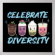Este divertido y lindo kawaii diseño de amante del té de leche muestra "celebrar la diversidad"