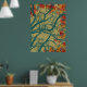 Obra de arte que representa un árbol sobre un fondo dorado con tronco verde y hojas naranjas rojas. Esta obra de arte simboliza el valor incalculable de los árboles para la vida en la tierra.