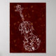 Sobre un fondo profundo de color rojo y dorado, se coloca un dibujo en línea blanca de un violín -compuesto enteramente de rollos y florecimientos caligráficos- en un ángulo diagonal.