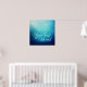 Un poster con un dicho genial que dice: El yoga cura el alma. Diseñado con un patrón de mitad mandala azul bonito con un color degradado de fondo de azul marino claro que se transforma en azul marino oscuro. Tranquilo y sereno.