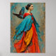 "Elaris" - Las plumas de volverse. Esta poderosa figura envuelta en el desplome del cambio lleva una transformación como una armadura. Los vivos tonos rojos y azules y las texturas que fluyen hablan de liberación a través de la evolución. Cada pliegue y flauta revela su viaje de la forma a la libertad, la fuerza a la suavidad, de la mujer al ala.