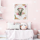Un hermoso elefante con delicadas flores sobre su cabeza. Salvaje y adorable. Un bonito póster para decorar la habitación o nursery de tu niña.