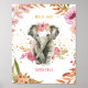 Póster Elefante Acuarela Flores Rosas Habitación Niña