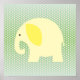 Este tierno y caprichoso elefante amarillo se sienta en un descolorido fondo verde menta con puntos de polka rosados. ¡Perfecto para decorar la habitación del bebé!