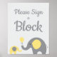 Muestra nuestro cartel de elefantes amarillos y grises con el tema "Por favor, Rótulo un bloque" para pedir a los invitados que firmen un bloque para el recién nacido. Se puede cambiar fácilmente la redacción para "decorar" un bloque o algo diferente si se prefiere. Para cambiar la redacción, haga clic en "Personalizar esta plantilla". Si necesita cambiar el tamaño de la fuente o la ubicación de los cuadros de texto, simplemente haga clic en el botón "Haga clic para más personalizar" para editarlo.