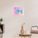Póster Elefante azul claro sobre acuarelas rosadas oníric