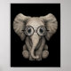 Póster Elefante bebé lindo con lentes de lectura negro