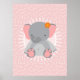 Póster Elefante Bebé Lindo Rosa Gris