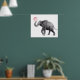 Póster Elefante Bonito Burbujas de Chicle Negro Blanco Gu