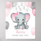 Invite a sus huéspedes a que le den un favor especial a este adorable poster de ducha de bebé con elefante rosa y gris, con globos y confeti. Fácilmente personalizado para su evento haciendo clic en "Personalizar".