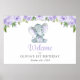 Póster Elefante, Flores Púrpura, Primera Bienvenida