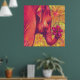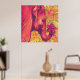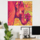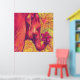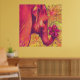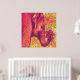 Un elefante rosa (¿o es rojo?) sostiene una flor de hibisco.