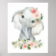 Póster Elefante, Safari, Flores rosadas, guardería Chica