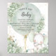 El encantador elefante neutral de género No digas el signo del juego del bebé. Con un lindo elefante para bebés y un globo verde salado jumbo adornado con flores verdes de salvia. Elementos coincidentes disponibles en el almacén. c) Somerset Fine Paperie