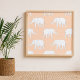 Toda una serie de elefantes blancos sobre un fondo colorido. Este diseño parece realmente efectivo en este Poster