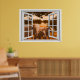 Póster Elefantes Sunset View Trompe l'oeil Fake Window