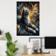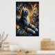 Una pintura vibrante que captura la esencia de un gato contra un llamativo fondo negro, mostrando su delicado comportamiento y su intensa mirada.