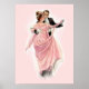 Hombre y mujer elegante. Ella es encantadora en un vestido rosa de noche y él es guapo en su esmoquin. Esta pareja romántica está bailando juntos a las tensiones de alguna música vintage.