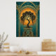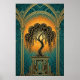 Póster Elegant Art Deco Weeping Willow Gold & Teal Poster
