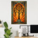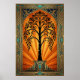 Póster Elegant Art Deco Willow Tree Sunset Gold