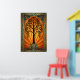 Add a touch of Jazz Age luxury to your walls with this stunning symmetrical willow tree silhouette. Featuring cascading branches set against a vibrant orange and gold sunburst, this piece is anchored by a majestic Art Deco tiered pedestal. The intricate geometric borders and deep teal accents make this a perfect statement piece for a sophisticated living room, office, or hallway.