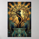 Póster Elegant Art Deco Woman Tree Silhouette Black Gold